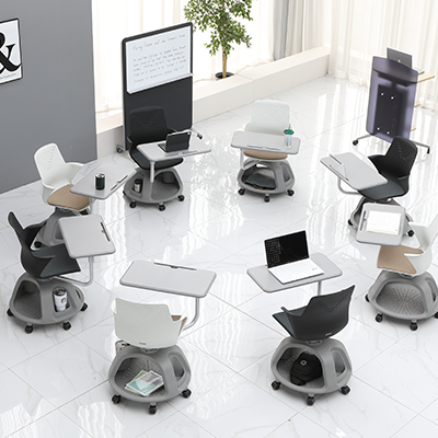 일체형 테이블은 자유롭게 회전하며 하단부에는 텀블러, 가방 등을 수 납할 수 있습니다.